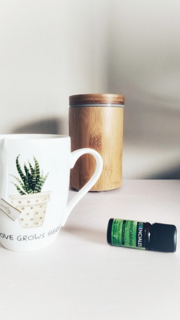 - 15 gotas de aceite esencial de mandarina: estoy enamorada de él. Aporta alegría, frescura y luminosidad, a la vez que paz interior.