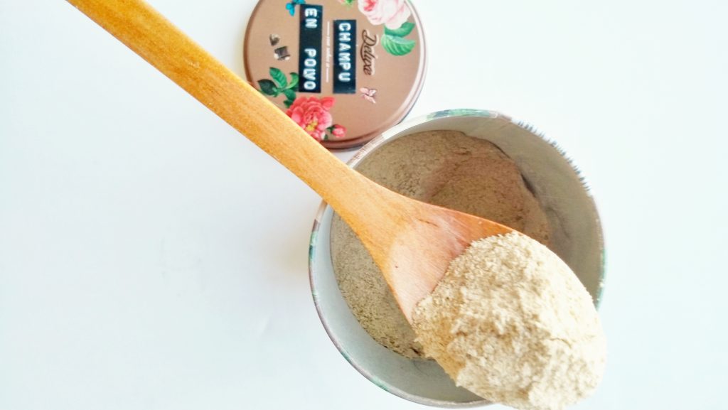 Basta con que todos los ingredientes estén en polvo y los mezcléis bien. Muchas personas prefieren no manipular instrumentos ni recipientes de metal o plástico si trabajan con arcillas porque estas se inactivan. Un profesor mío -que es una eminencia- me quitó esta idea de la cabeza y, aunque es cierto que para la receta lo removí todo con una cuchara de madera, luego lo envasé en una lata de metal. Este paso lo dejo a vuestro criterio. Por cierto, valga decir que, como no lleva agua, este champú no requiere conservantes.